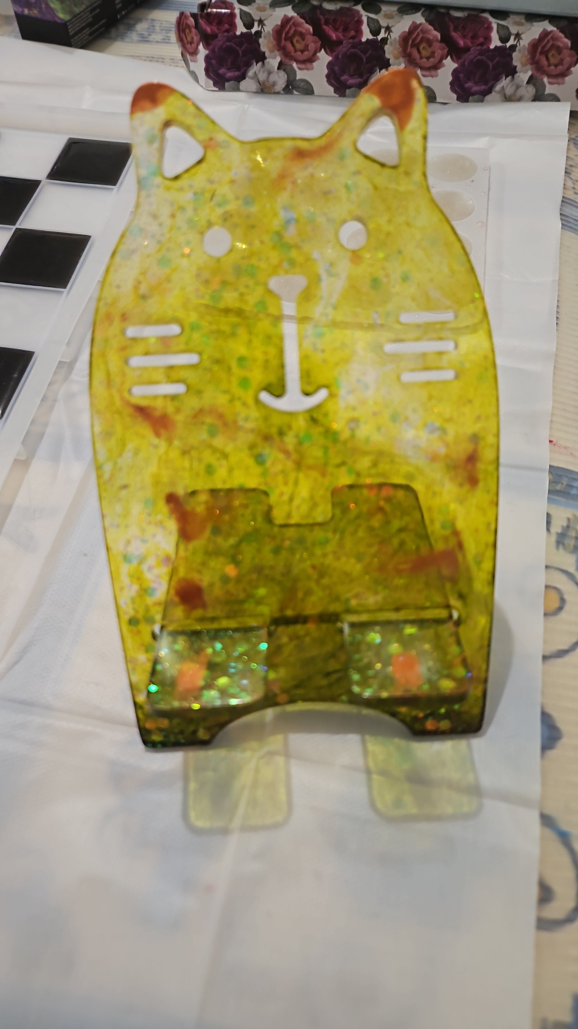 Support téléphone en résine. Peut servir de support téléphone, livre, jeu, etc.